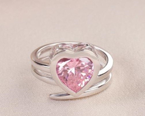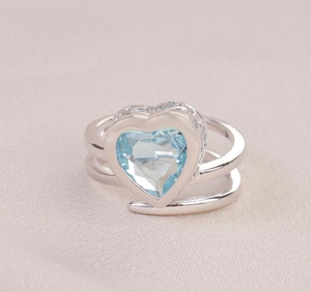 Anel de prata 925 com banho de ródio e pedra em formato de coração